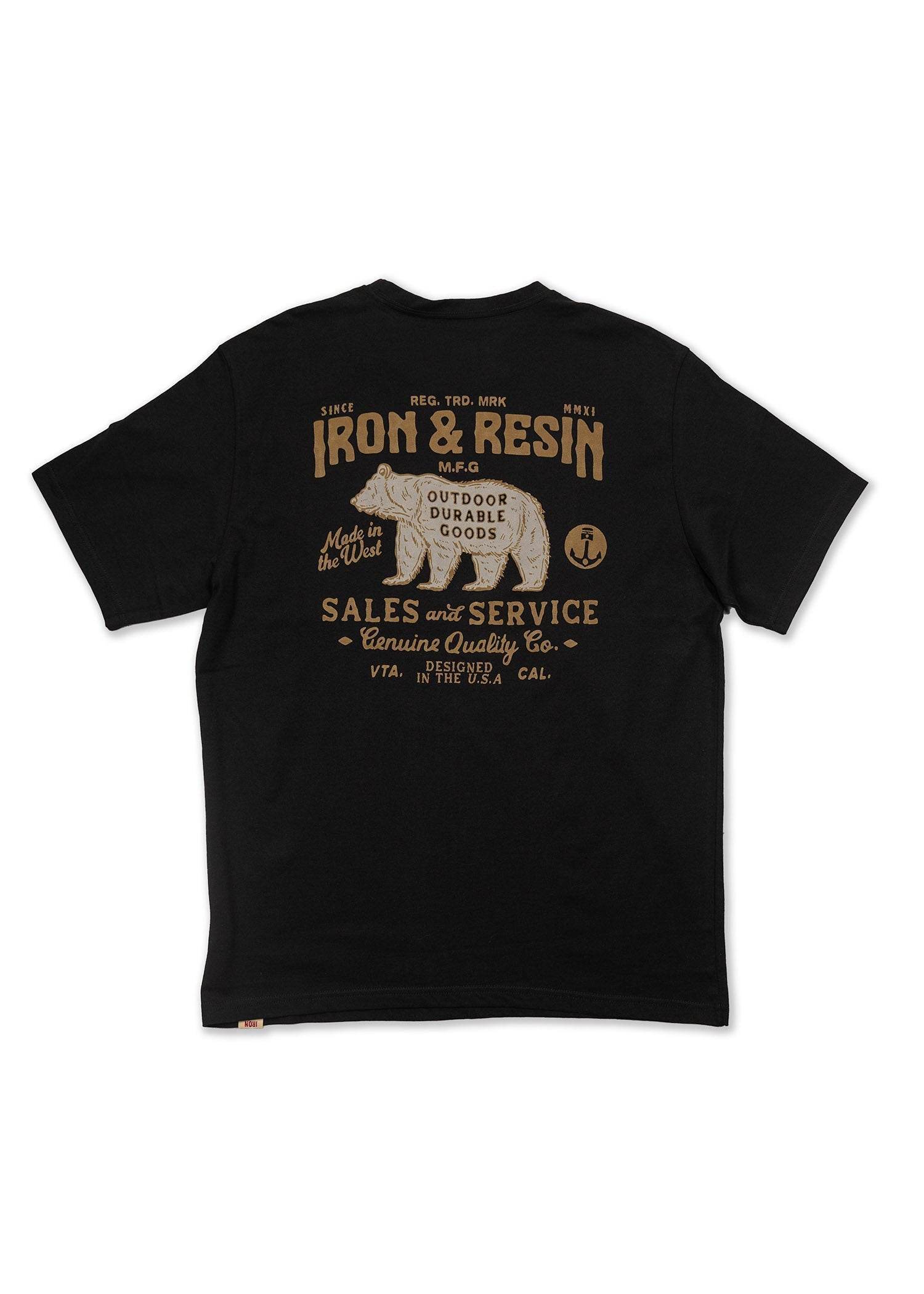 - Iron & Resin custom graphic printed on chest pocket and back